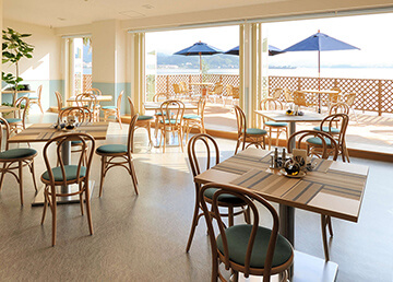 ヨーロッパのカフェをイメージし、青を基調としたゆったり過ごせるカフェが誕生。気持ちの良いバルコニー席や、個室も完備され、シェフ自慢のイタリアンを堪能できます。また、わんちゃんメニューも充実。ドッグランも小型犬限定用、全犬種用と2箇所用意され、ワンちゃんも大満足。