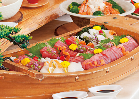 浜名湖レークサイドプラザのディナーバイキングはライブ感と新鮮さをお届けします。目の前で仕上げる出来立てメニューの他、当ホテルこだわりの料理の数々をお楽しみください。