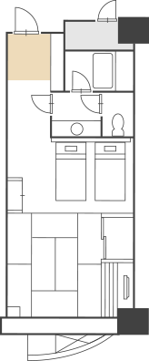 ツインベッドと畳の間(8畳)の和洋室です。ファミリー・グループでゆったりとおくつろぎいただくのに最適です。