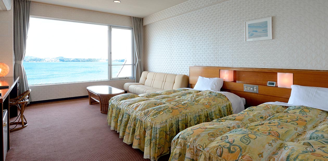 洋室 rhodes western style room この部屋を予約する 客室面積 25平米 定員 3名 設備 浴衣、バスタオル、タオル、ドライヤー、ファブリーズ、靴べら、ブラシ、外出用スリッパ、金庫、冷蔵庫、エアコン、32型テレビ、給湯器 アメニティ 歯ブラシ、髭剃り、くし、シャンプー、リンス、ボディソープ、メイク落とし、洗顔、化粧水、乳液、シャワーキャップ、スリッパ、お茶、湯のみ、お茶菓子 一覧ページへ戻る